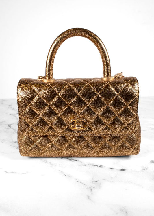 Chanel Gold Caviar Leather Top Handle Flap Bag