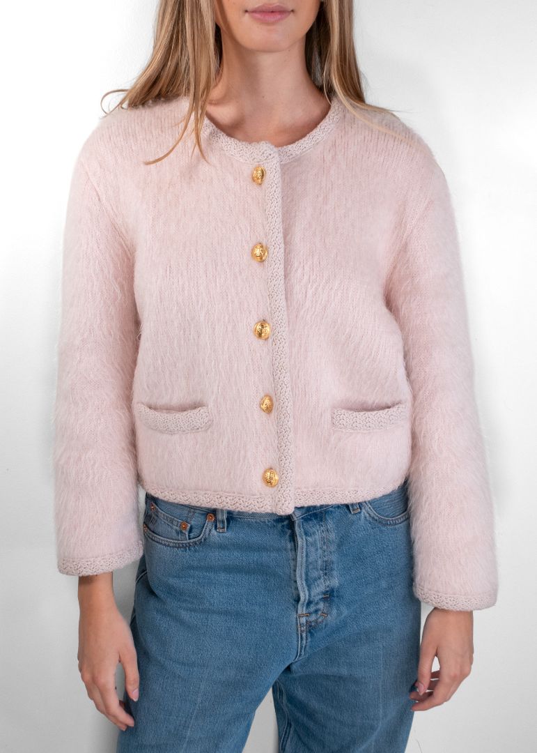 Celine Light Pale Pink Fuzzy Mohair Cropped Jacket