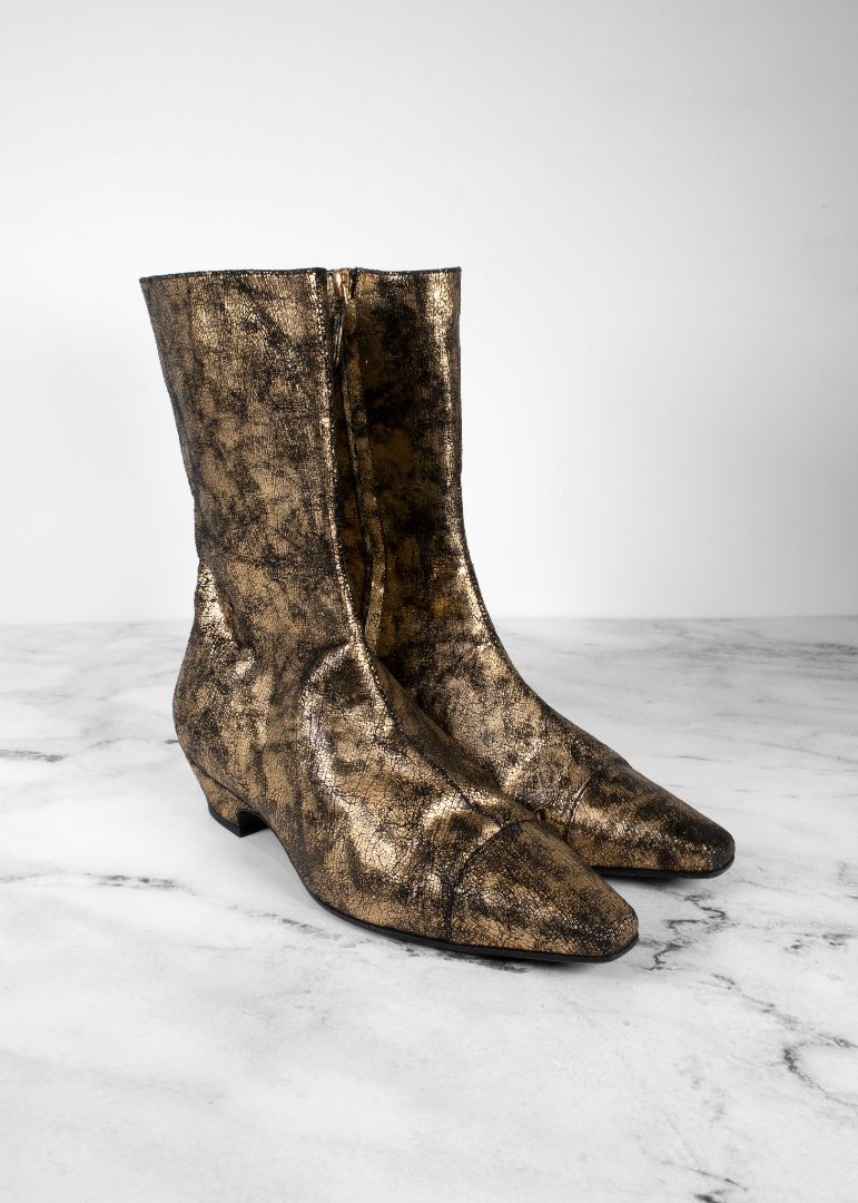 Chanel Gold Laminated Leather Ankle Boots