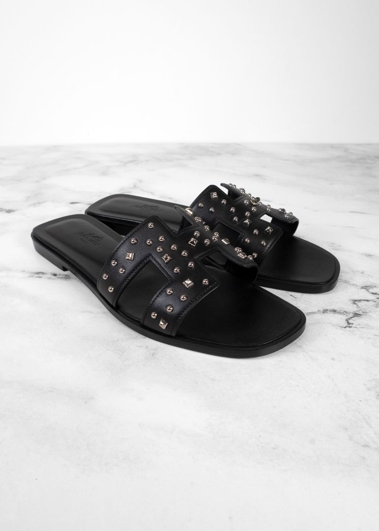 Hermes Black Oran Slides