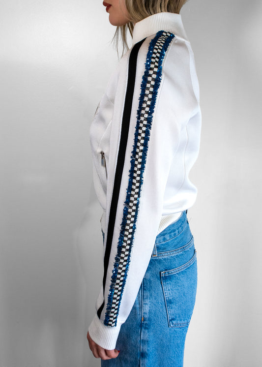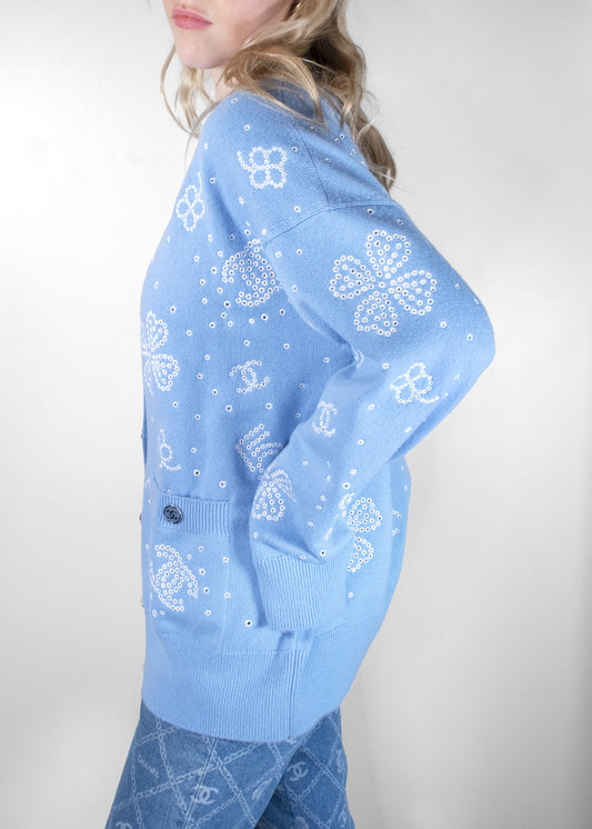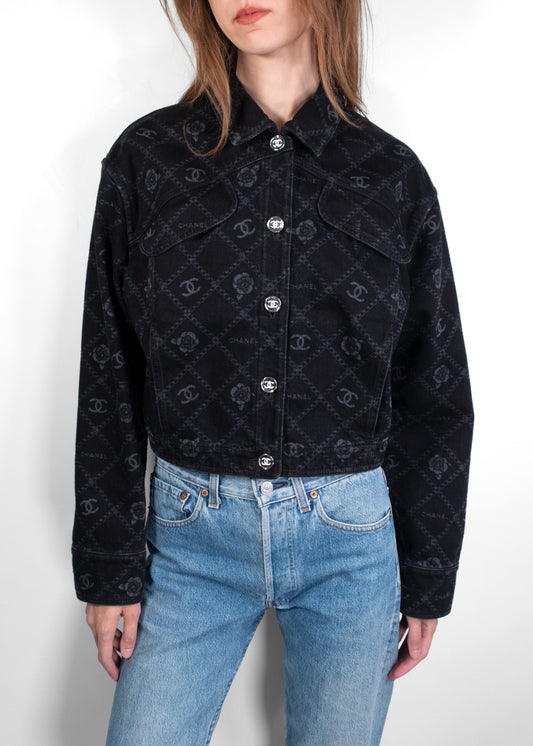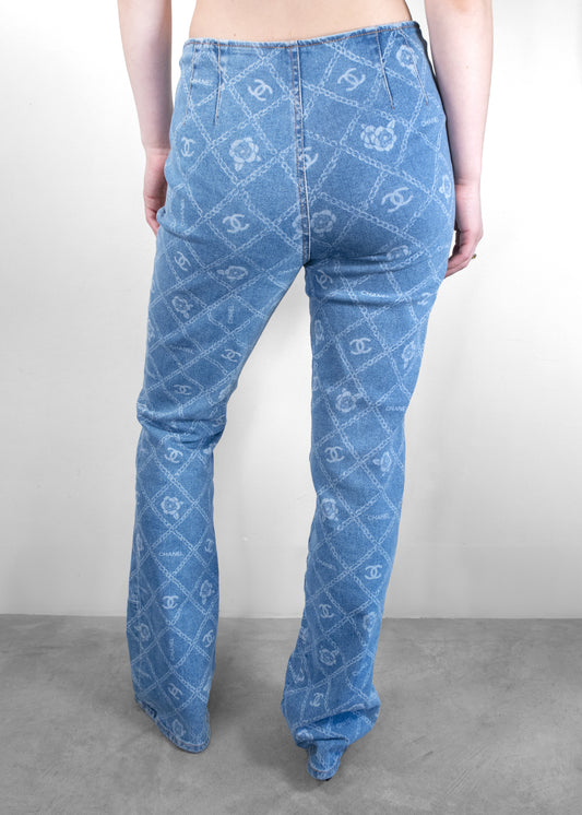 Chanel 2023 Métier d’Arts Printed Denim CC Logo Blue & White