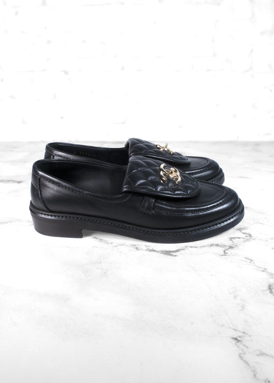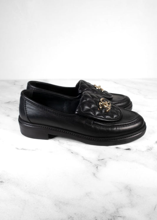 Chanel Black Quilted Leather CC Turnlock Loafers