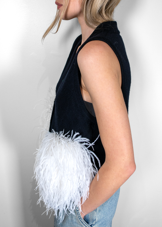 Chanel Black Cashmere & White Ostrich Feathers Vest