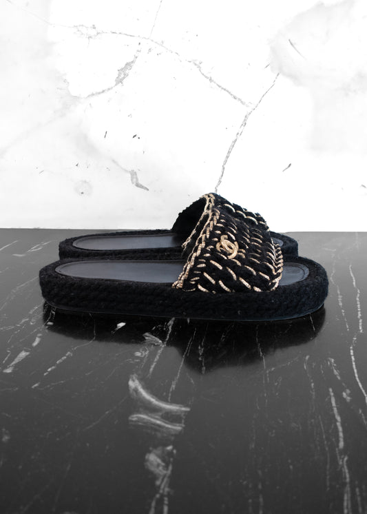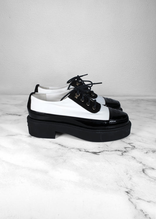 Chanel Black White Oxford Loafers CC Platform Shoes