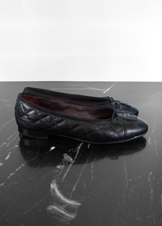 Chanel Black Quilted Leather CC Bow Cap Toe Ballet Flats