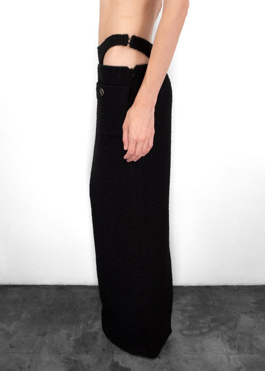 Chanel Black Tweed Maxi Skirt With Cut-outs