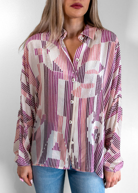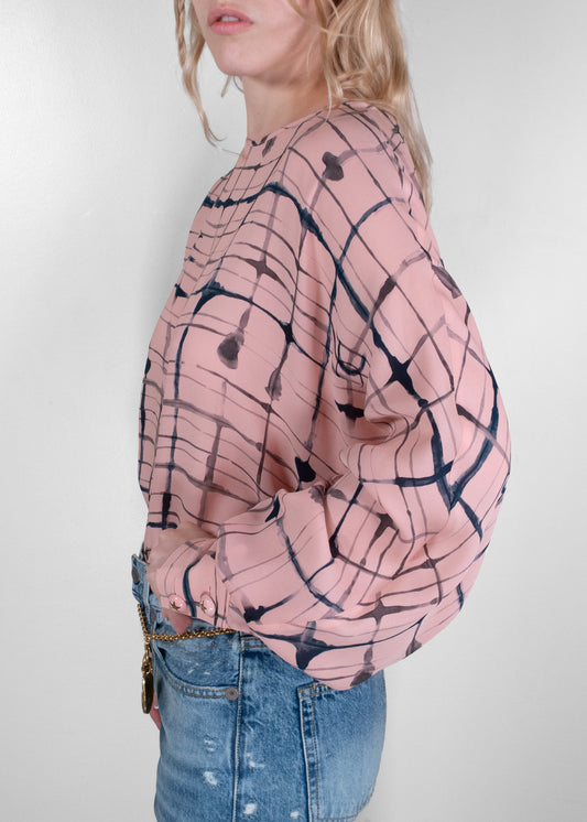 Chanel Pink Silk 2021 Printed Long Sleeve Blouse