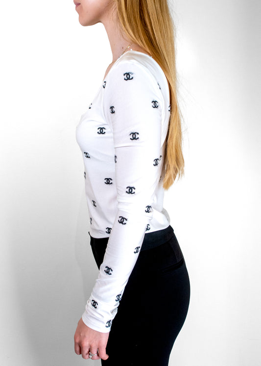 Chanel Stretchy Square Neck Line Top with CC Metallic Logo