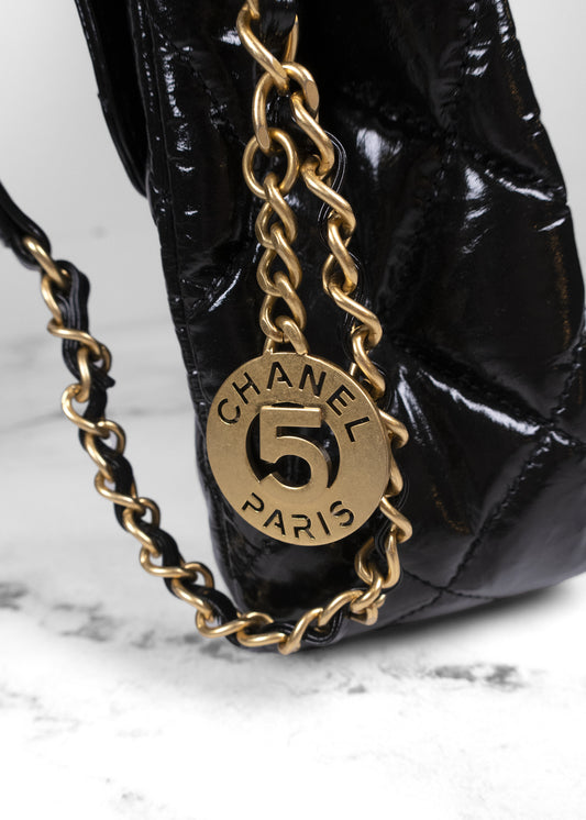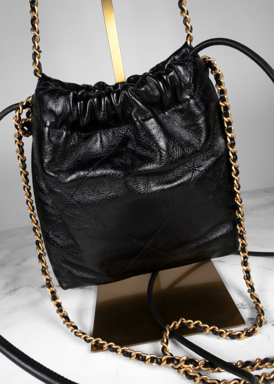Chanel Shiny Crumpled Calfskin Quilted Pearl Mini Chanel 22 Black