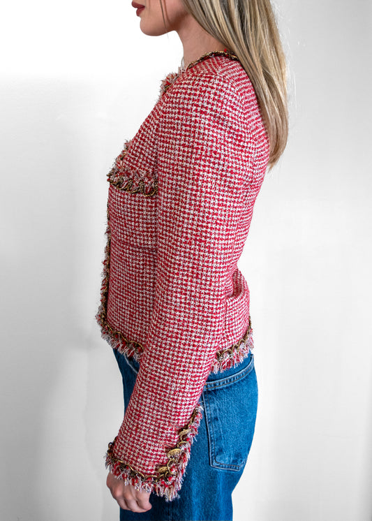 Chanel Red Ivory and Metallic Gold Tweed Jacket