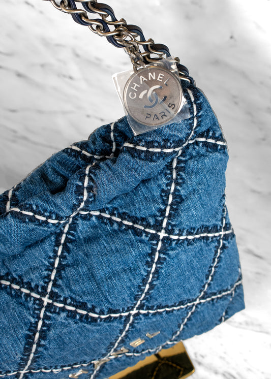 Chanel Stitched Denim Quilted Chanel 22 Blue Handbag