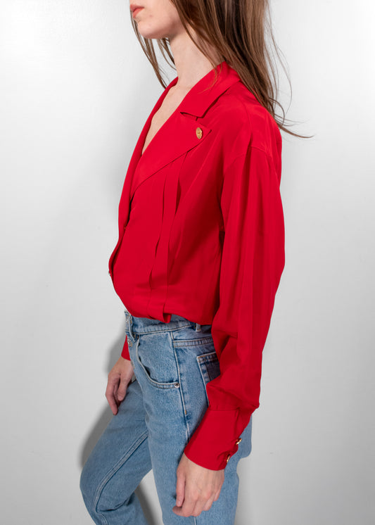 Chanel Vintage Red Silk Double-Breasted Blouse