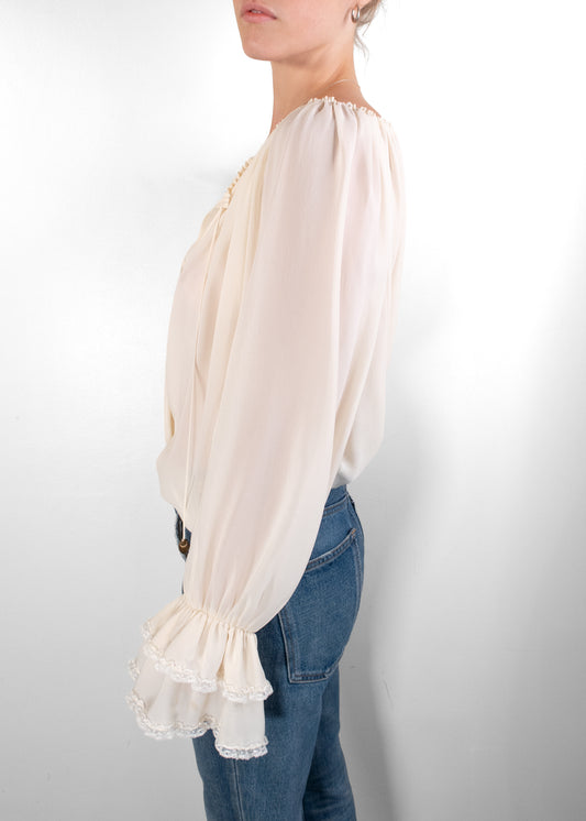 Chloé Gathered Silk V-Neck Blouse in White