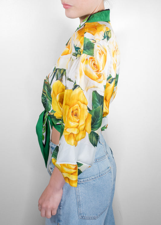 Dolce & Gabbana Yellow Rose Print Tie-Front Blouse