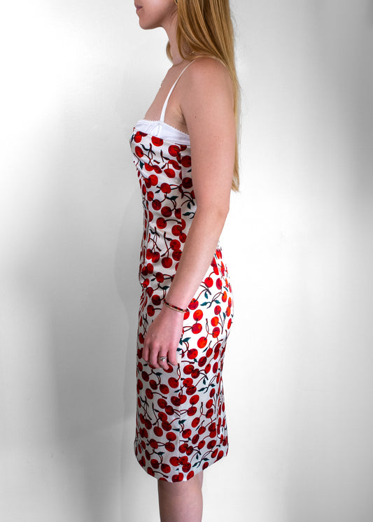 Dolce & Gabbana 1996 Cherry Print Corset Silk Cocktail Dress