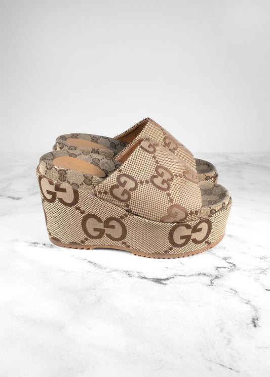 Gucci Monogram Jumbo GG Platform Slide Wedge Sandal