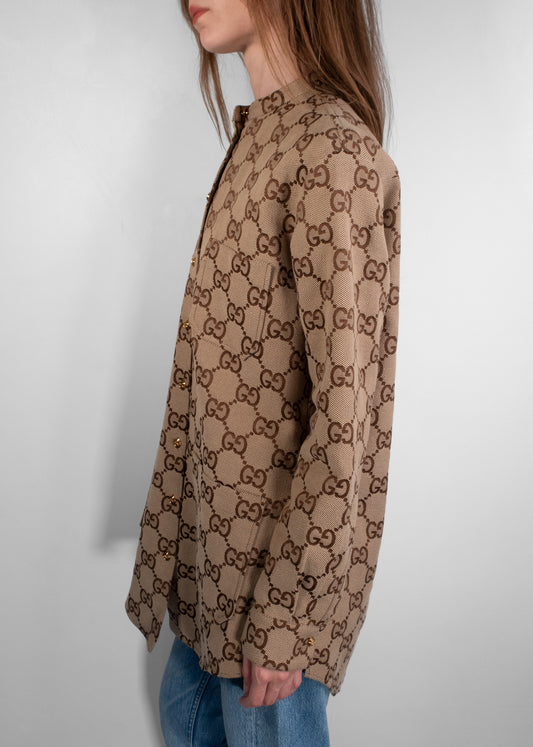 Gucci Maxi GG Canvas Shirt in Camel and Ebony