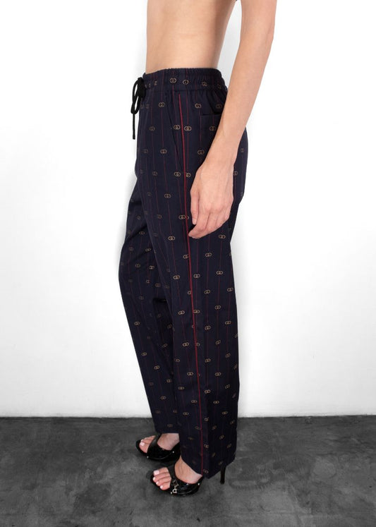 Gucci Navy Striped GG Elastic Waist Print Pants