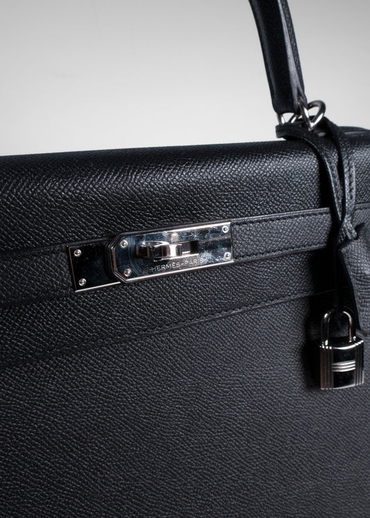 Hermès Kelly Sellier 32 Black Epsom Palladium Hardware