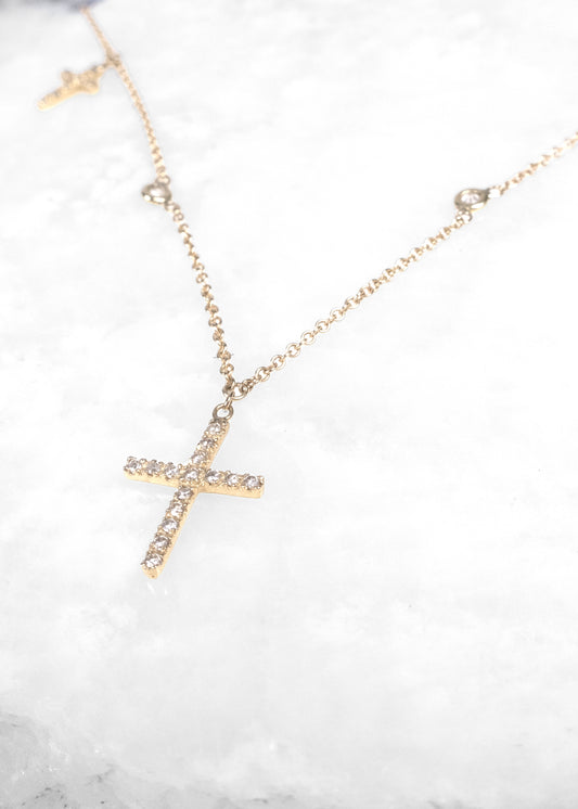 Jacquie Aiche Gold and Diamond Cross Choker Necklace