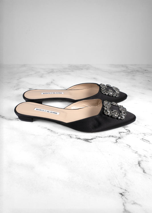 Manolo Blahnik Hangisi Crystal-embellished Satin Slippers