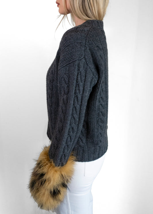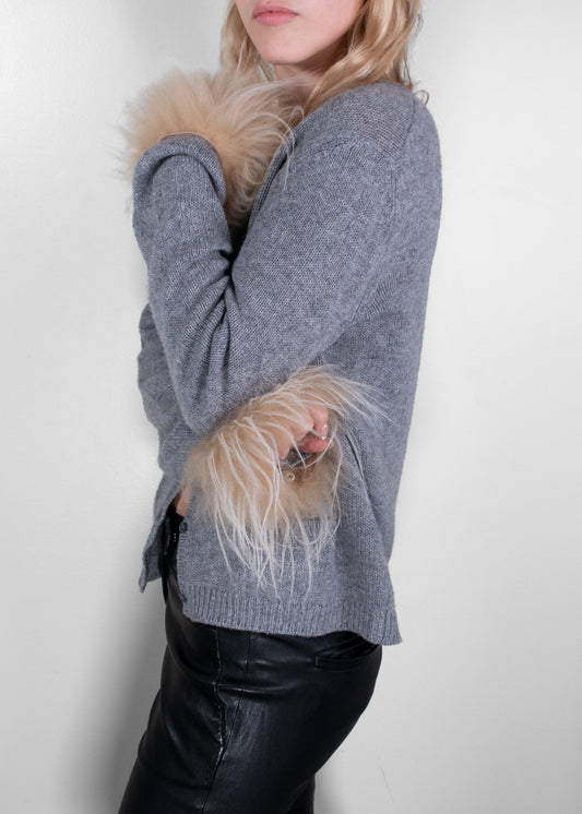 Prada Grey Cashmere Cardigan with Fur Cuffs