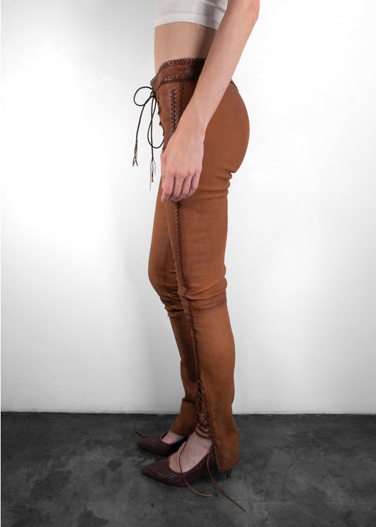 Polo Ralph Lauren Lace-Up Stretch-Leather Pant
