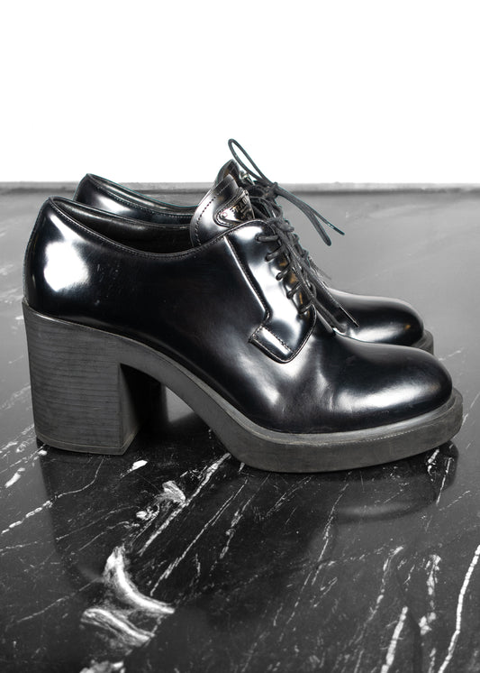 Prada Spazzolato Metal Triangle Logo Lace Up Loafers