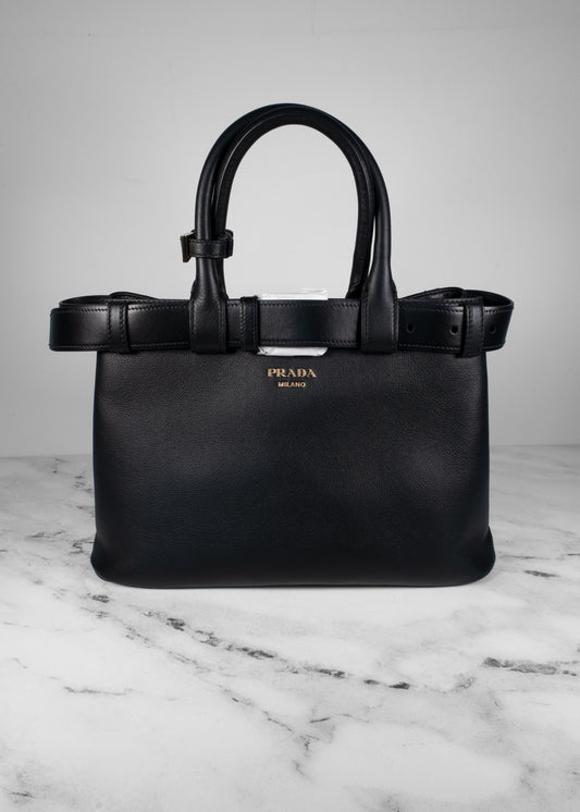 Prada Mini Galleria Triangle Logo-Plaque Tote Bag