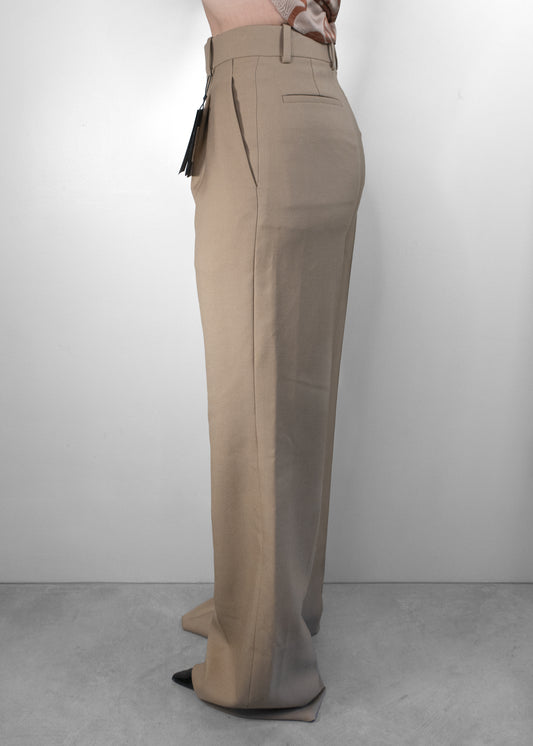 Saint Laurent Beige Pleated Front Wide-Leg Trouser Pants