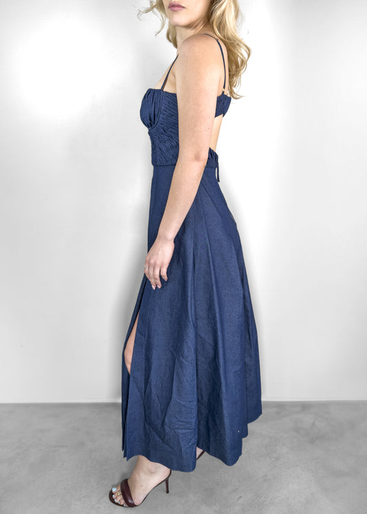Carolina Herrera Bustier Stretch Denim Midi Dress