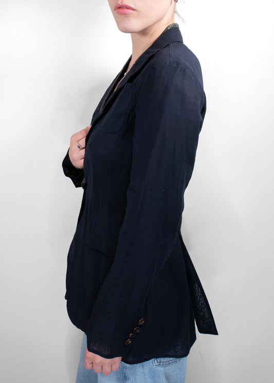 Brunello Cucinelli Navy Linen Blazer With Lurex Trim