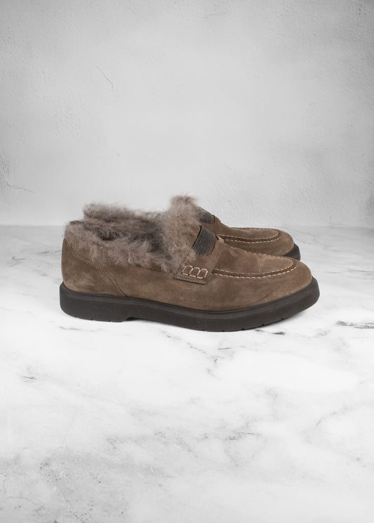 Brunello Cucinelli Suede Shearling Penny Loafers