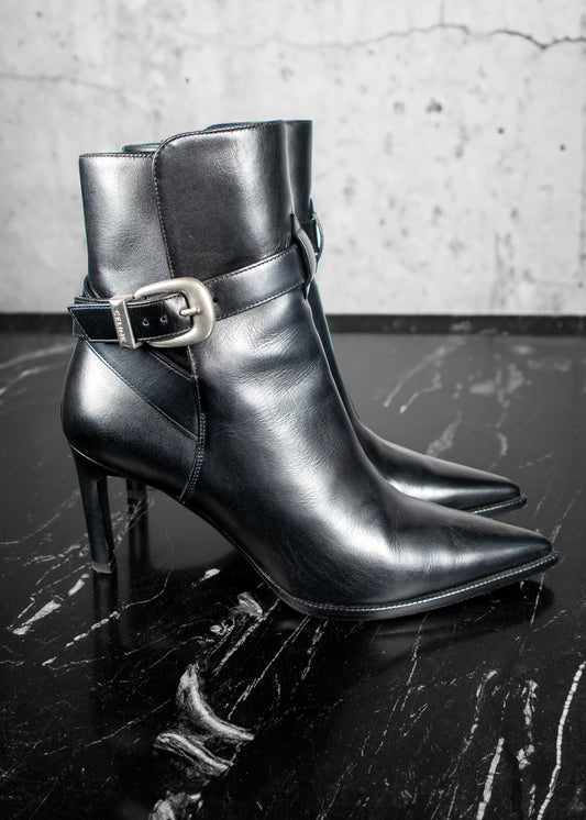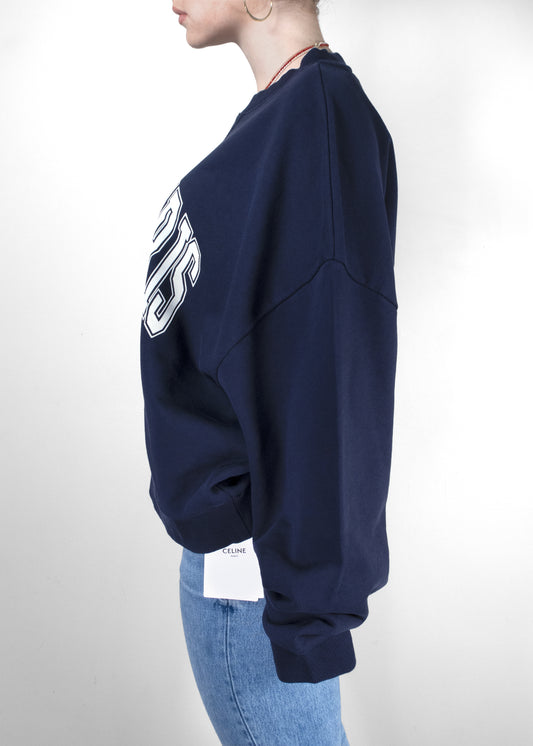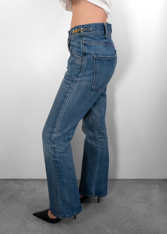 Celine Dylan Blue Washed Gold Triomphe Buckle Bootcut Jeans