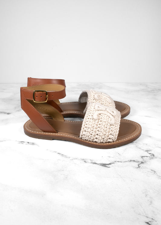 Celine Lympia Sandal In Triomphe Maccramé Cotton & Calfskin