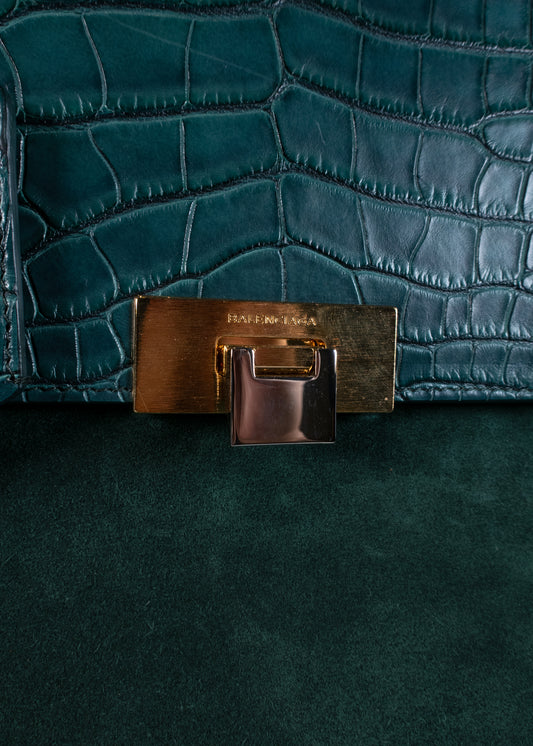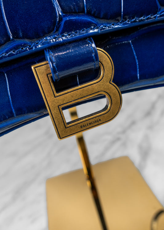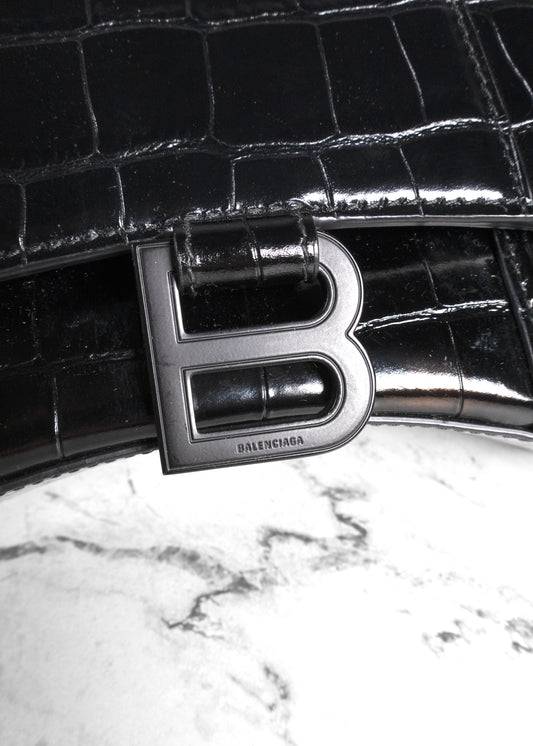 Balenciaga Small Croc-Embossed Hourglass Handle Bag