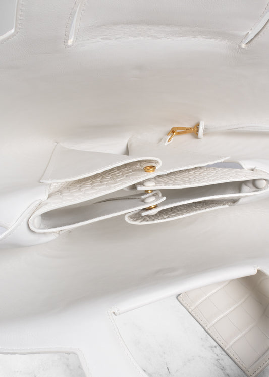 Bottega Veneta Calfskin Crocodile Embossed Doll Top Handle Bag