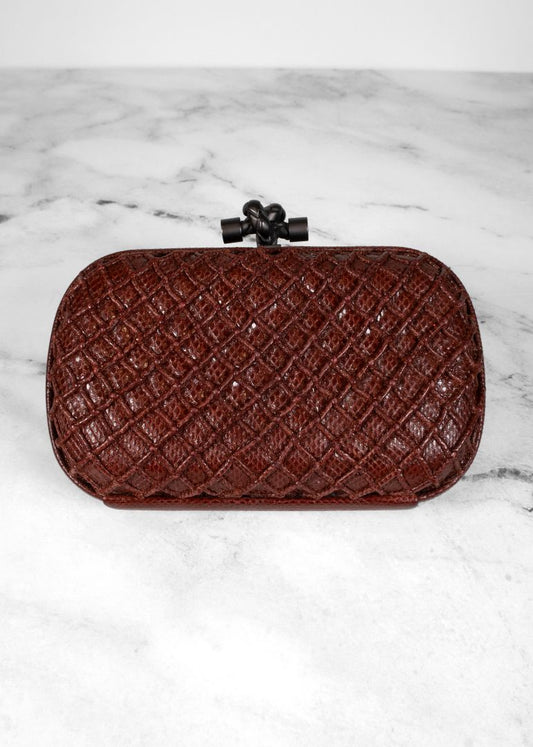 Bottega Veneta Brown Snake Skin Knot Clutch