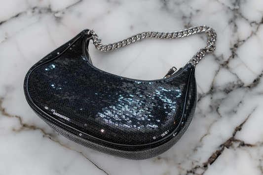 Celine Sequin Medium Chain Ava Black Shoulder Bag
