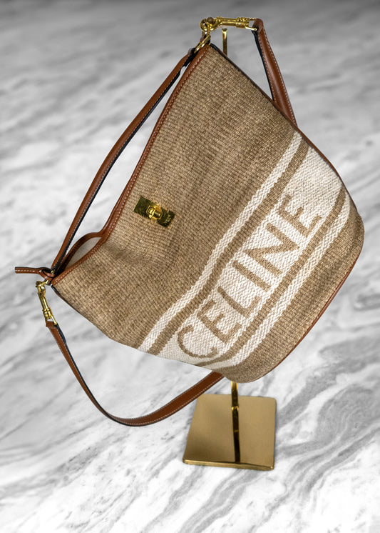 Celine Triomphe Stripe Zip Top Pouch Clutch