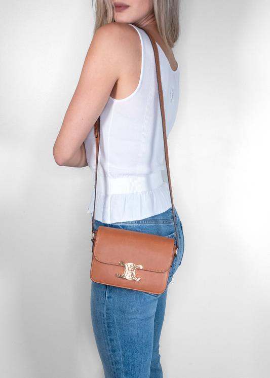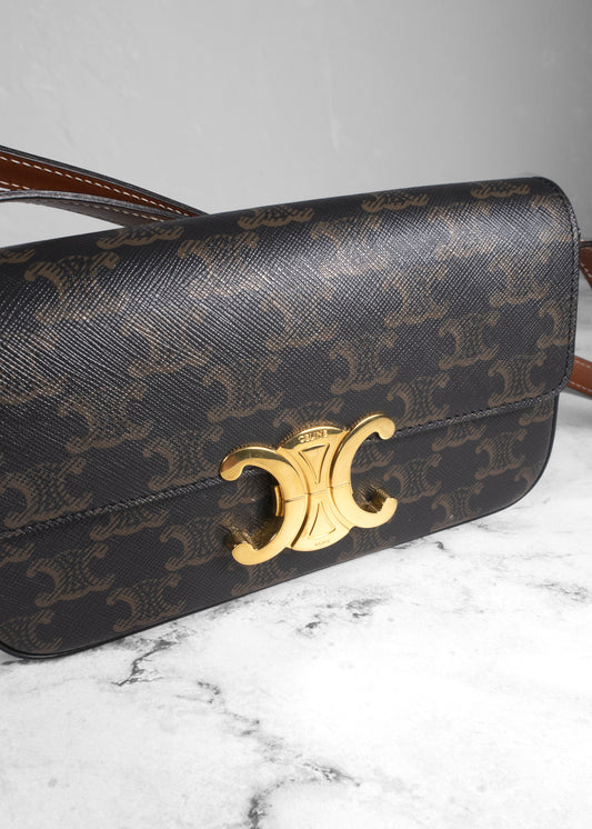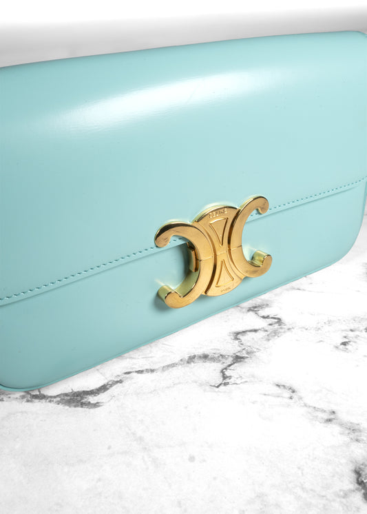 Celine 2022 Teen Shiny Calfskin Triomphe Shoulder Bag