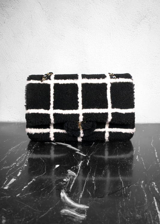 Chanel Shearling Lambskin Large Fluffy Tartan Single Flap