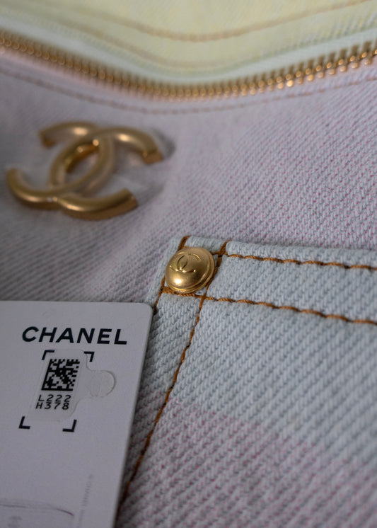 Chanel Printed Denim & Gold-Tone Metal Large Waist Bag