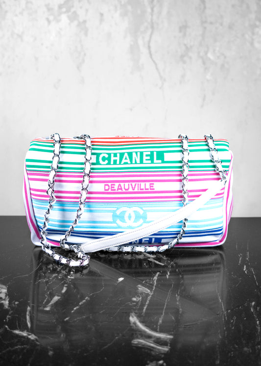 Chanel Mixed Fibers Lambskin Venise Biarritz Flap Bag Multicolor White