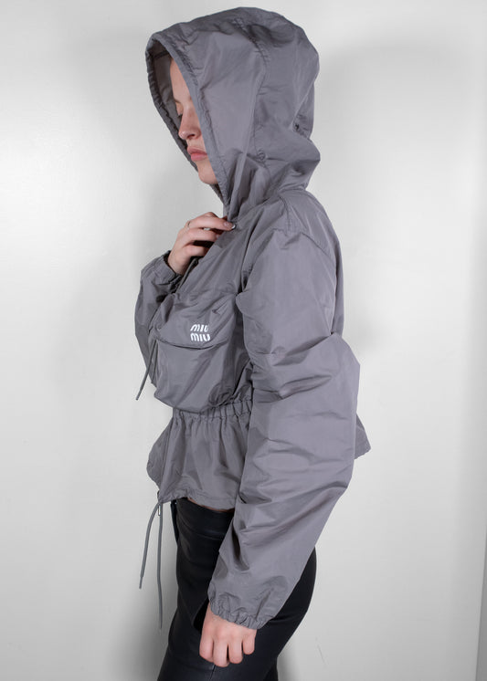 Miu Miu Navy Wool And Brown Suede Zip Up Jacket