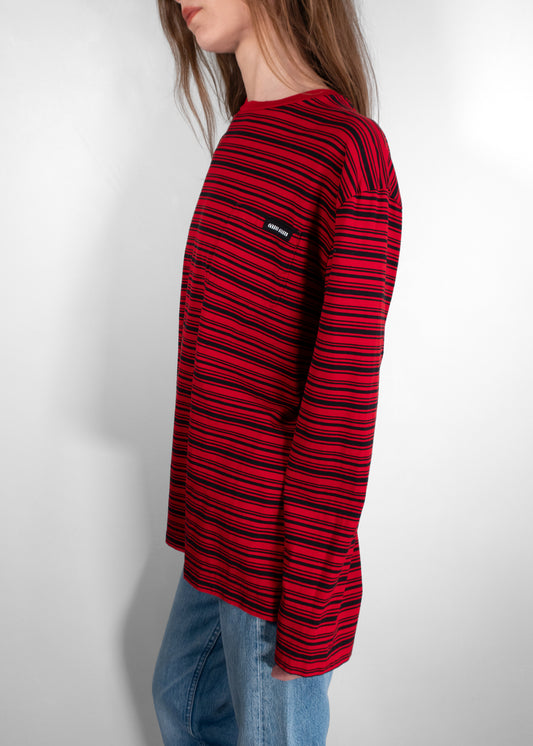 Miu Miu Red/black Long-sleeved Cotton Jersey T-shirt