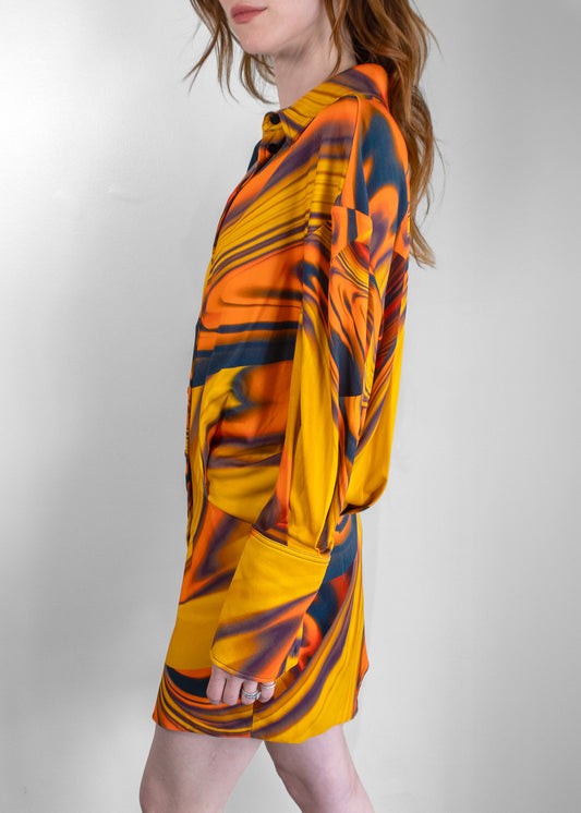 Siedres Jasmy Top Brown, Beige, And Orange Half Zip Short Sleeve Size S