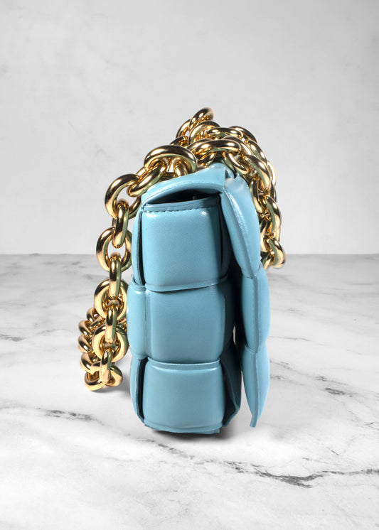 Bottega Veneta Lambskin Maxi Intreccio Padded Chain Cassette Crossbody Bag Mallard
