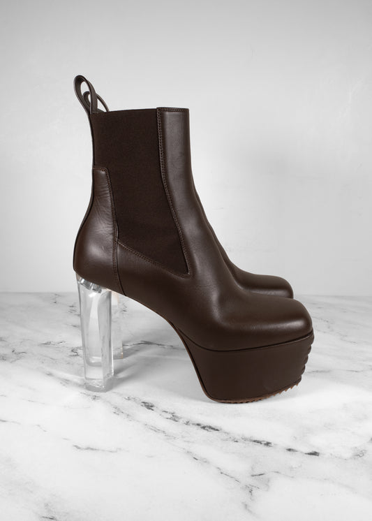 Rick Owens Brown Leather Platform Boots