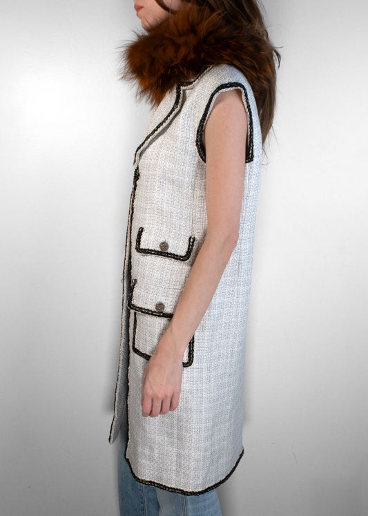 Chanel Navy Red And Blue Tweed Coat With Black Patent Leather Belt